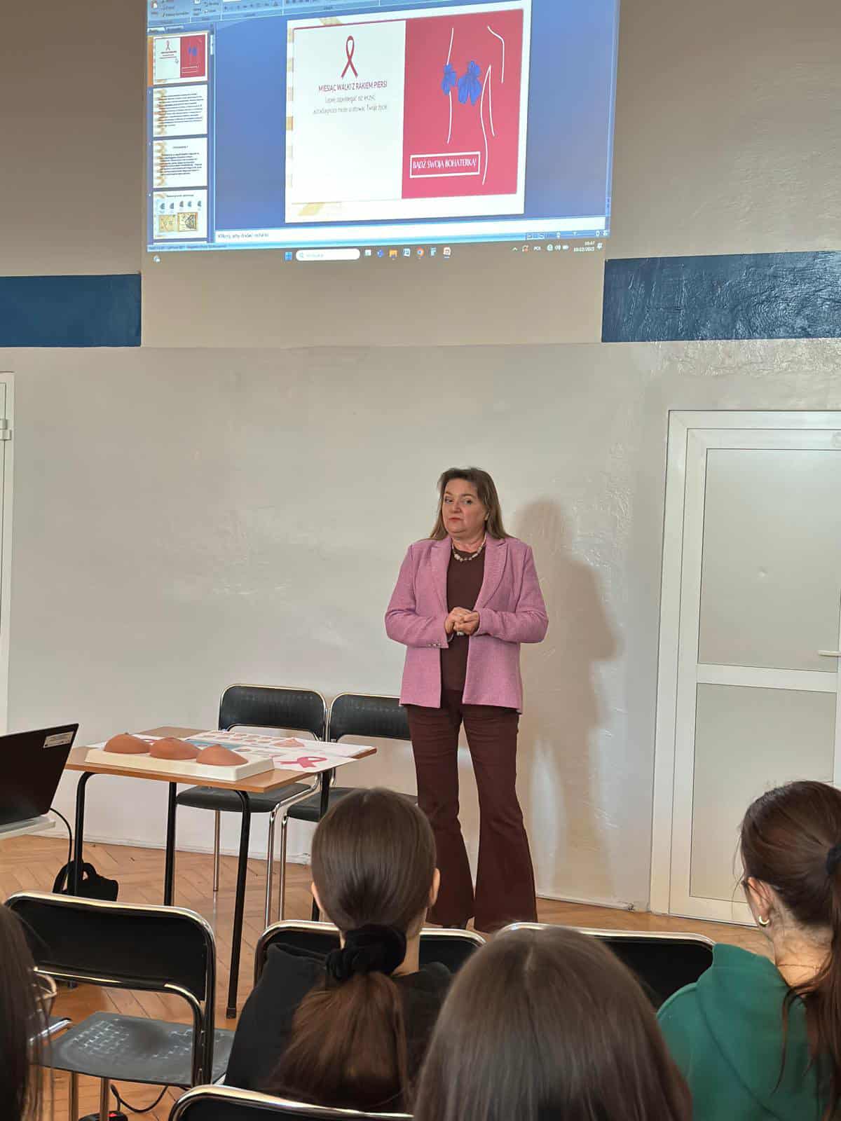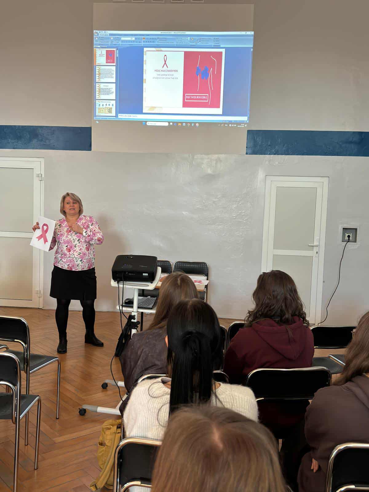 Wczoraj w naszej szkole odbyło się spotkanie poświęcone profilaktyce raka piersi, zorganizowane we współpracy z Powiatową Stacją Sanitarno-Epidemiologiczną w Lubaczowie w ramach ogólnopolskiej akcji „Różowy Październik”.