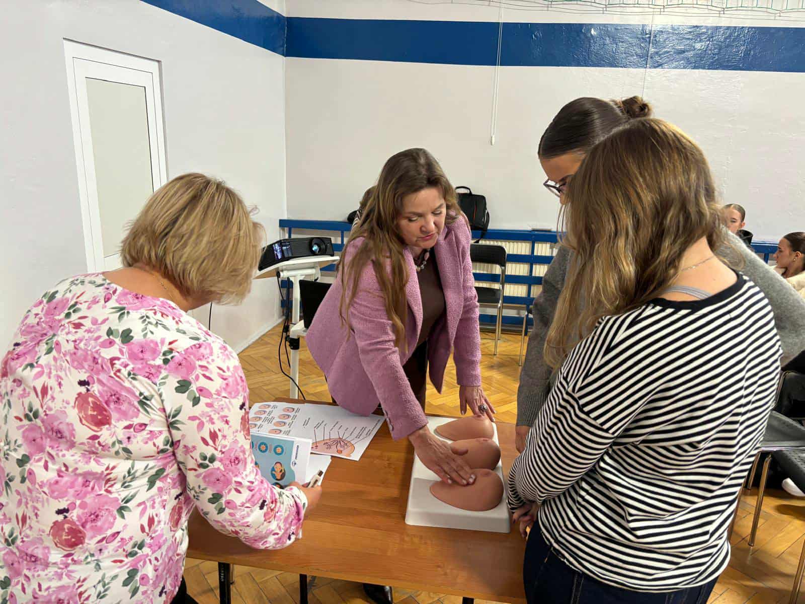 Podczas wydarzenia uczennice klas czwartych wysłuchały prelekcji położnej środowiskowej pani Małgorzaty Lewkowicz, która opowiedziała o znaczeniu wczesnego wykrywania choroby, czynnikach ryzyka i sposobach dbania o zdrowie, a także o technikach samobadania piersi i regularnych badaniach profilaktycznych.